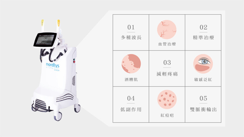 1. 「Nordlys 魔幻極光」可以改善皮膚泛紅、微血管絲、紅痘疤等血管性問題,以及曬斑、雀斑、老人斑、暗沉膚色不均及腋毛、手腳毛、汗毛等部位除毛。